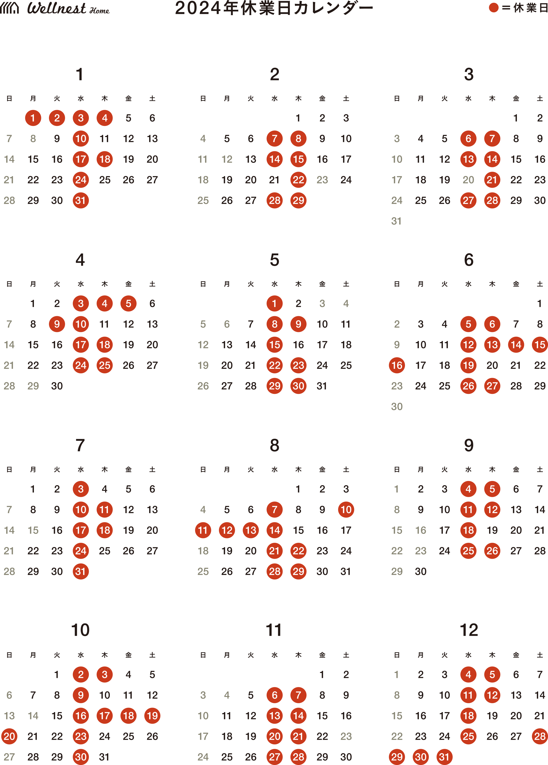 平素は格別のご高配を賜り、厚く御礼申し上げます。 2024年の弊社モデルハウス営業日についてアップデートいたしました。 (以下、最新カレンダーとなります)