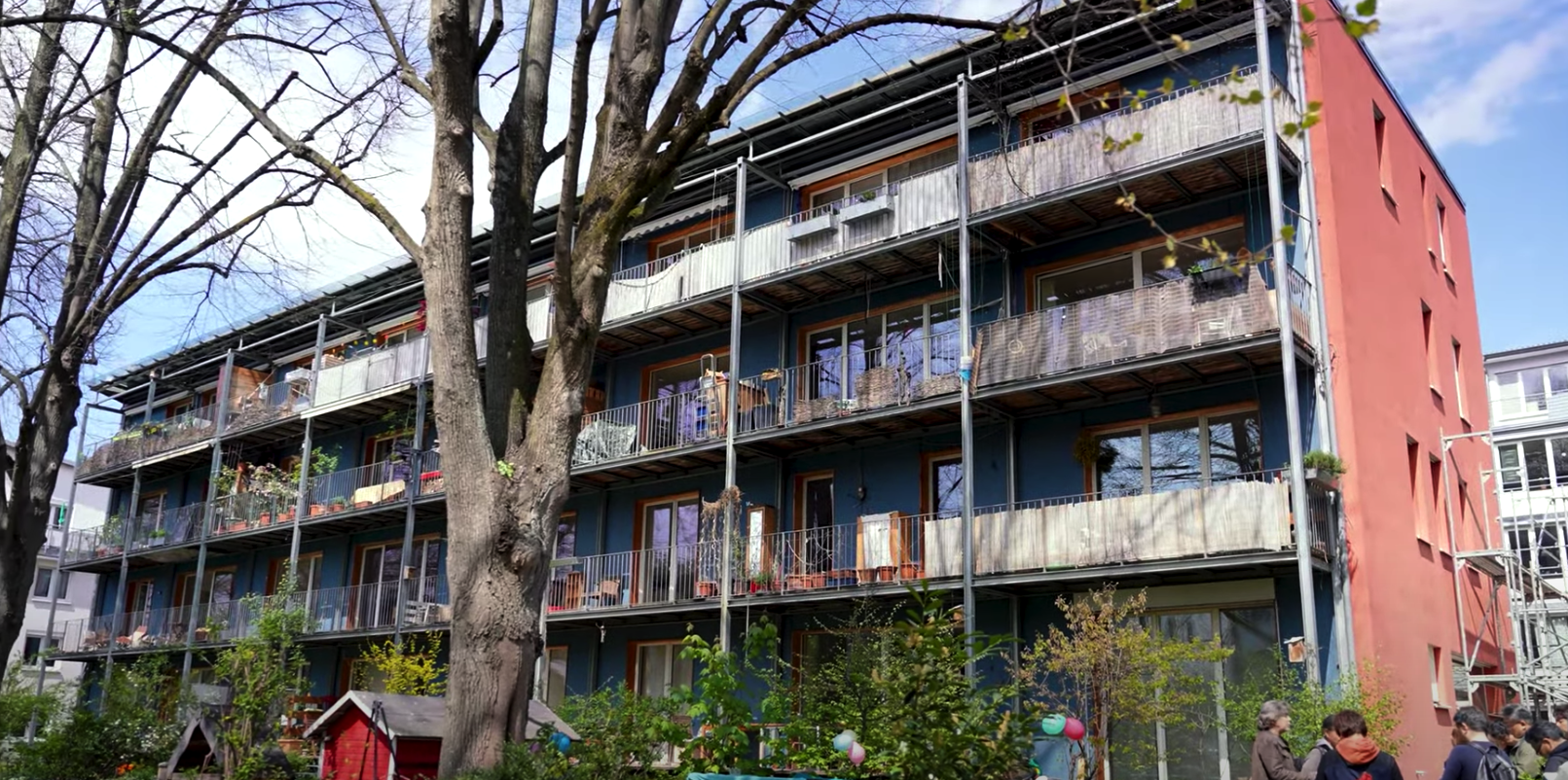 上の写真は、1997年に建てられた賃貸住宅で、フライブルクで一番初めに建てられたパッシブハウスレベルの賃貸住宅だといわれています。