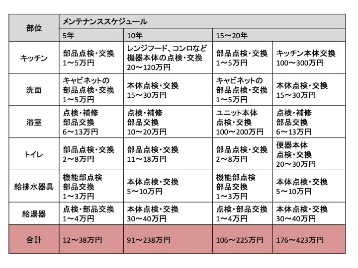 マンション、戸建て共通のメンテナンスコスト【キッチン、トイレ等のメンテナンス】