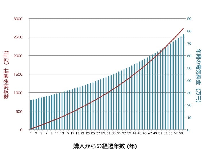つまり、生涯にわたって支払う電気料金の方が、建物の価格よりも高くなるのです。