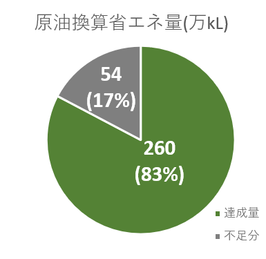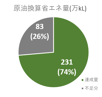 さて結果は予想通りさんざんたる状態で、2030年度の必達目標314.2万kLに対して、達成量が231万kLと83万kLもの未達成削減量が発生してしまいました。