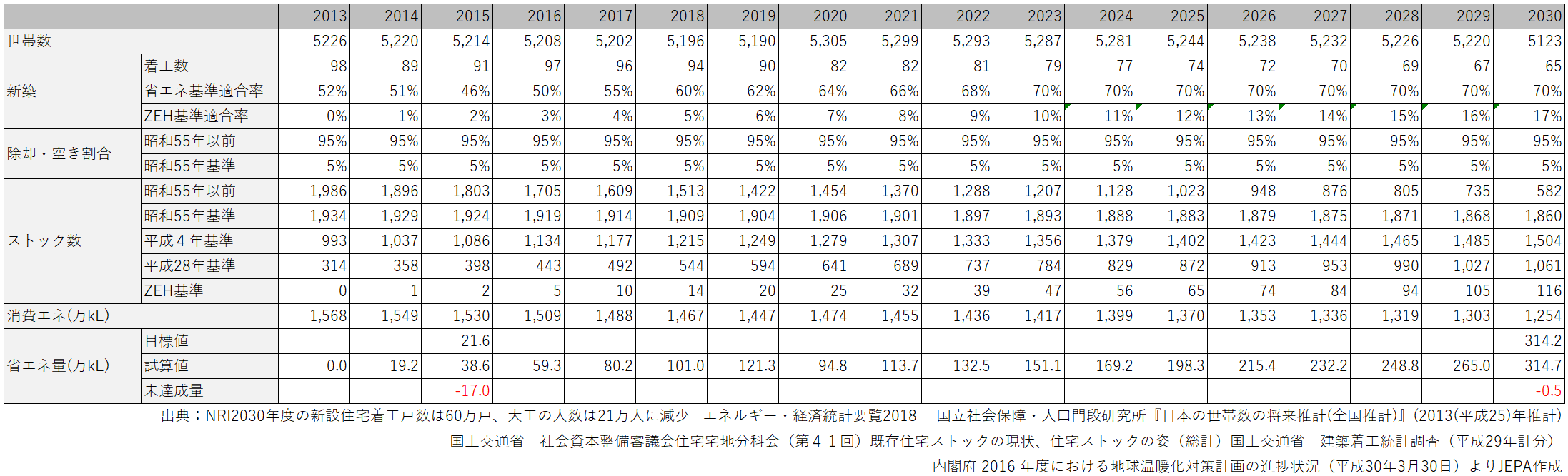 しつこいようですが、これまでの政府の試算では一貫して、家庭部門の主力気候変動対策として、2030年までに、真水の削減量として20%省エネの実現が必達目標。そのためには、少なくとも2020年までに最低限新築される住宅に関しては平成28年基準以上にしておくことが必要不可欠と試算されていました。