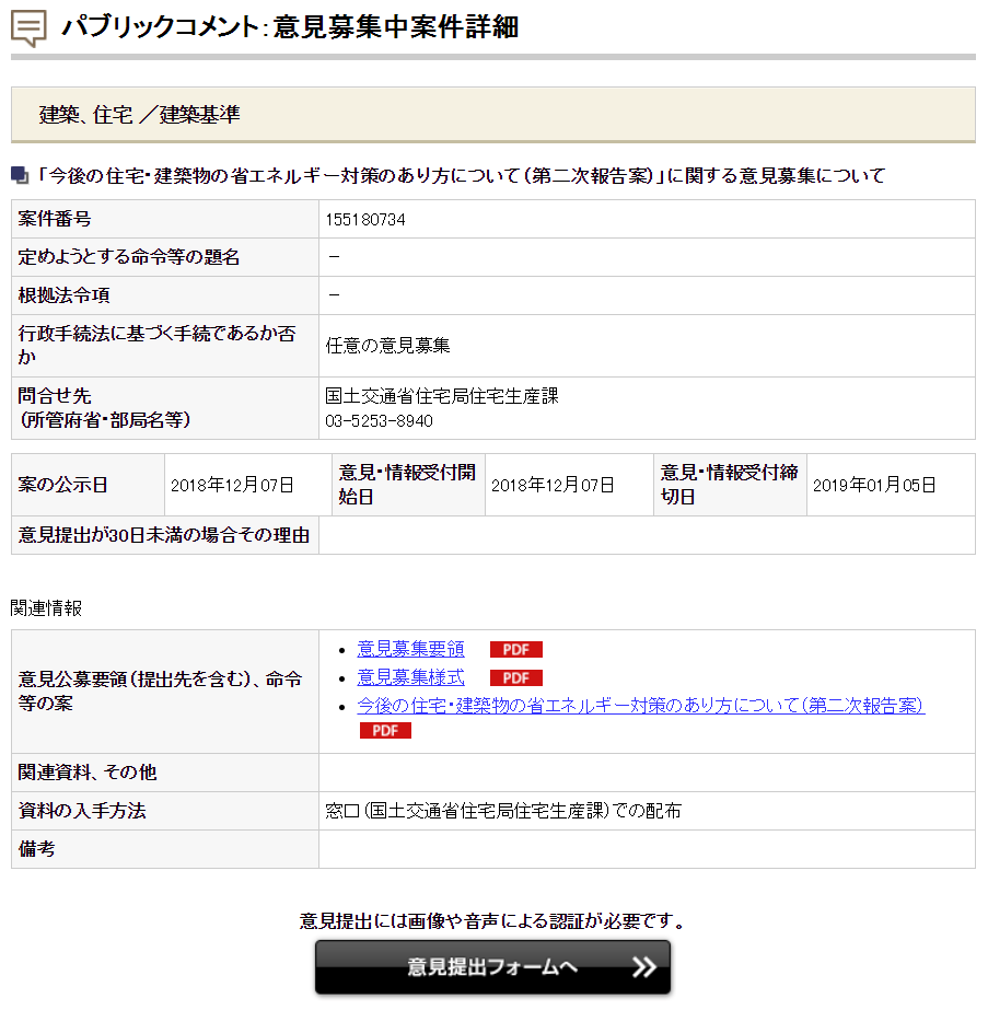 2018年12月7日~2019年1月5日までパブリックコメントを募集しています。