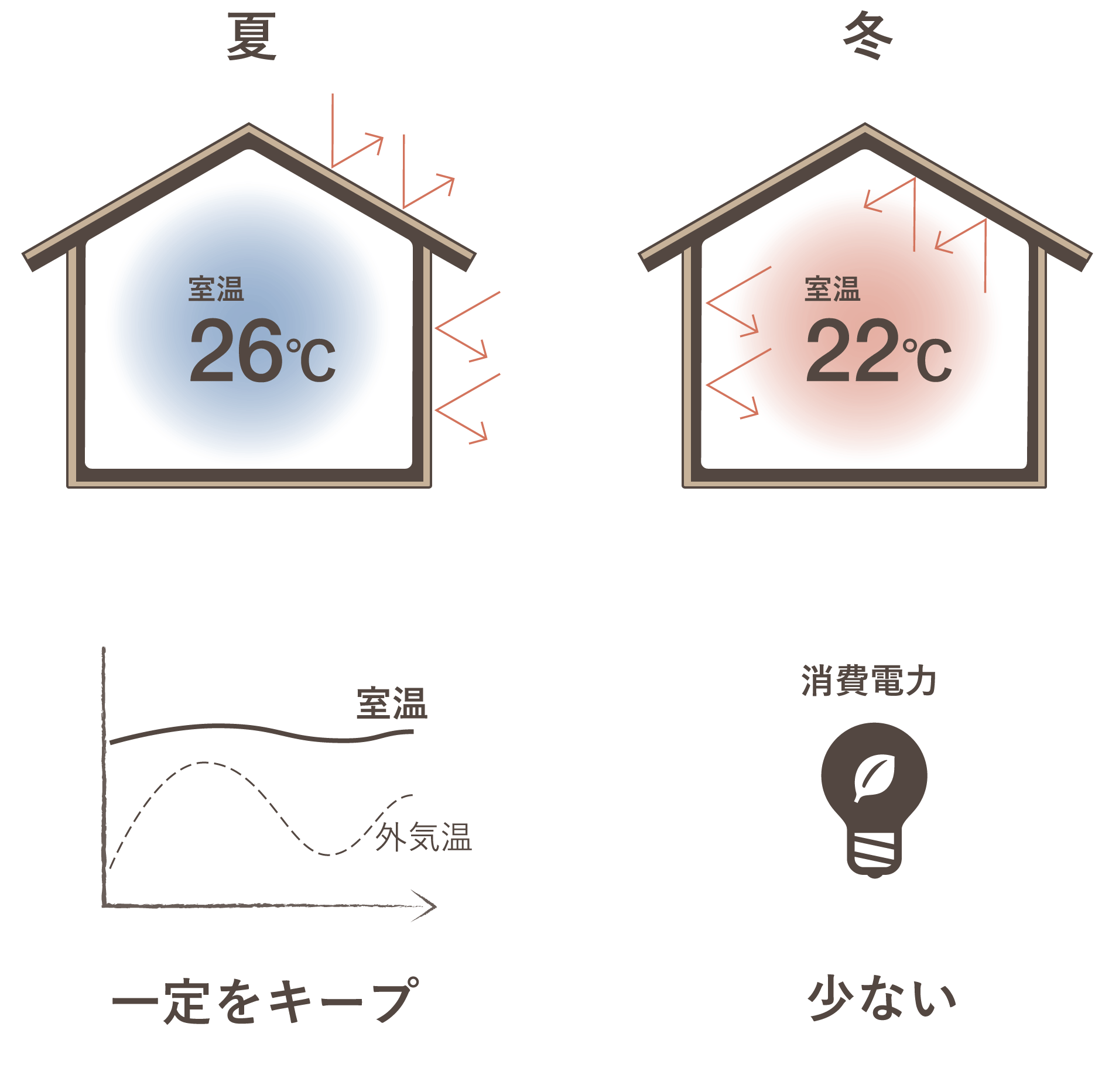 日本の家は、冬寒くて夏が涼しいのが当たり前になっていないでしょうか。それが前提なので、当然ながら冷暖房による消費エネルギーも膨れ上がります。