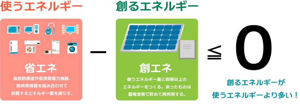 ZEH(ゼッチ)は省エネと創エネの2つで成り立っている