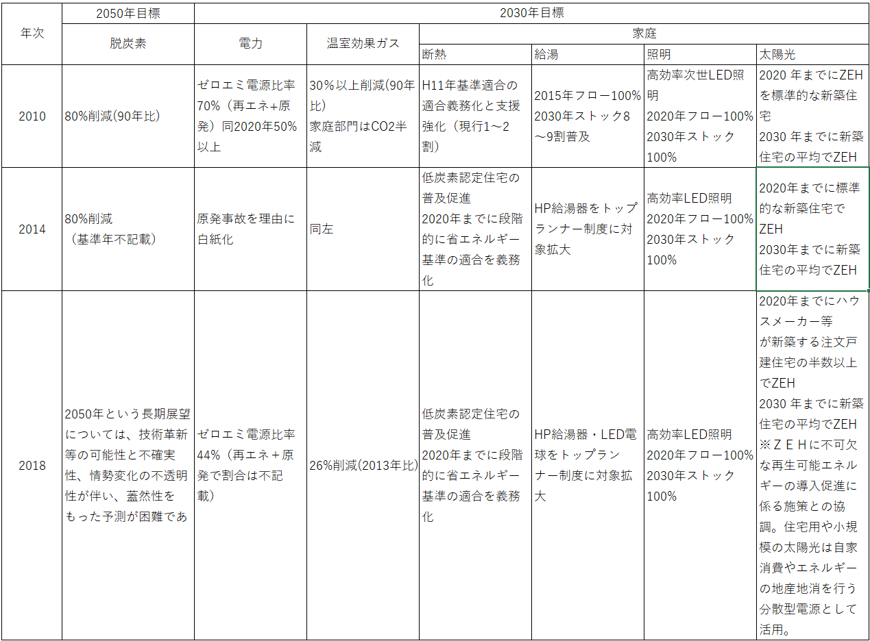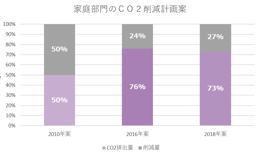 2011年の原発事故の影響を除いても、住宅の省エネ化の目指す削減量が2010年当時より後退している。