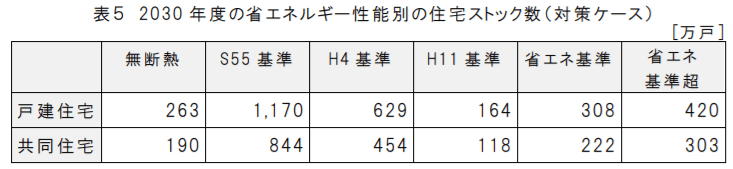 既存ストックに関しては、話し出すと非常に長くなるので、今回は割愛しますが、以前と同じく、新耐震未満はごく少数耐震断熱改修、原則として新耐震以上はペアガラス化やペアサッシ化程度の断熱改修(と言うか現実的にはこれぐらいしか無い)が年6万件程度想定されているままだとすれば(数値目標未記載につき不明ですが記載ないので変更なしと推測)、温暖化対策として大きな影響はありません。窓周り改修程度なのであれば、逆にもっと目標件数の積み増しをすべきかとは思います。