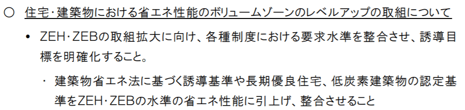 「住宅・建築物における省エネ対策の強化について」の下記の記載内容についても、エネルギー基本計画にずーっと書かれ続けている文章です。