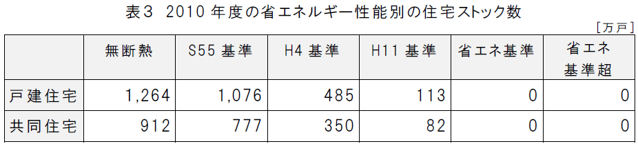 表3が基準となる2010年のストック数。