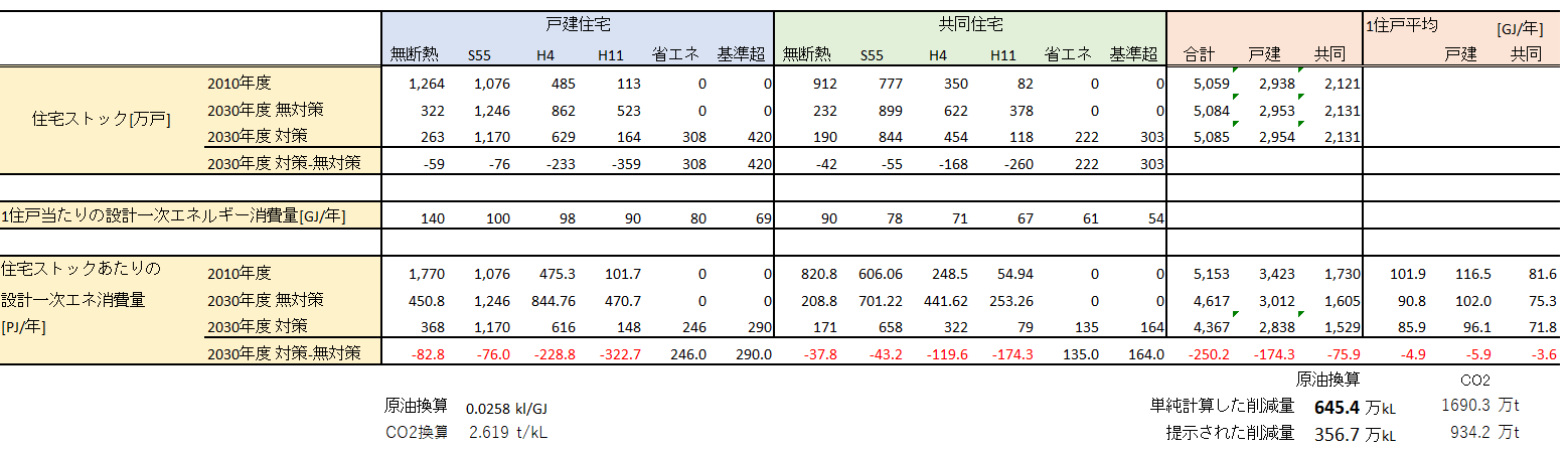 2012年エネルギー白書における家庭全体の一次エネルギー消費量4,033PJ/年なので、計算方法を根本的に見直してより現実劇な値に近づけたという事なのかもしれません。(2016年案は全く現実的なものでは無かったという事が確定なのではないかと思います。)