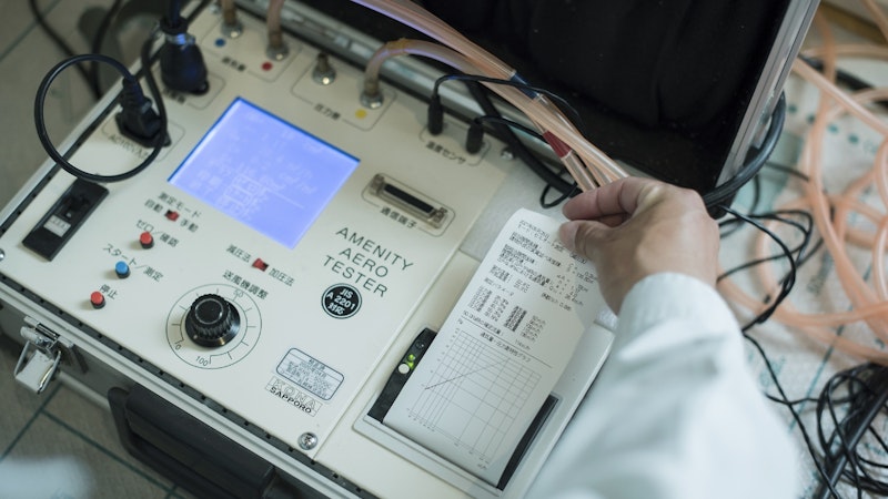 ウェルネストホームでは、中間時と完成時の2回にわたり気密測定を実施しています。C値が0.2㎠/㎡以下をクリアしていなければ、次の工程に進行することも、お引渡しすることもできません。この厳格な基準は、快適な暮らしをお届けするために、絶対にゆずれないこだわりなのです。