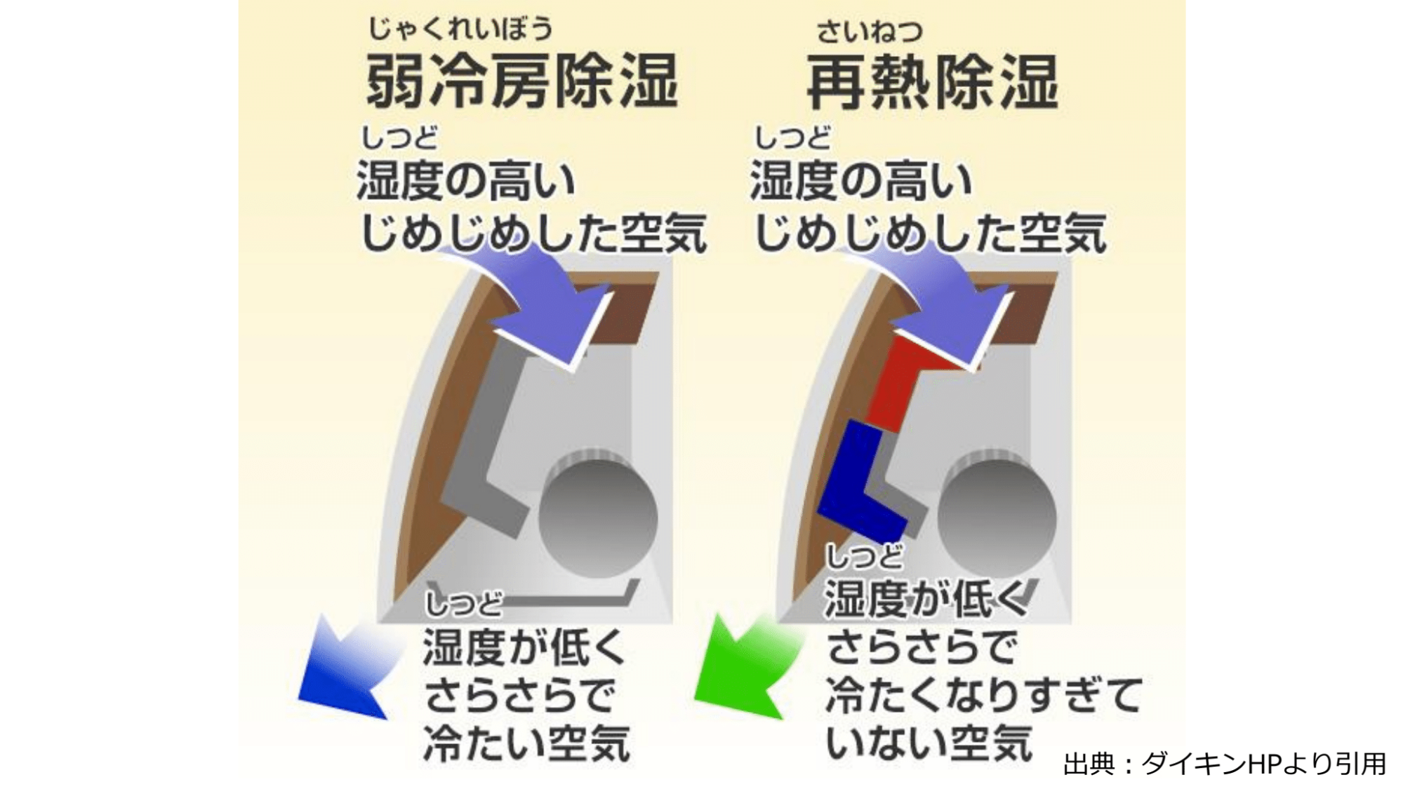 ところで、弱冷房除湿と再熱除湿といった、この2種類の除湿はいったい何でしょうか。
