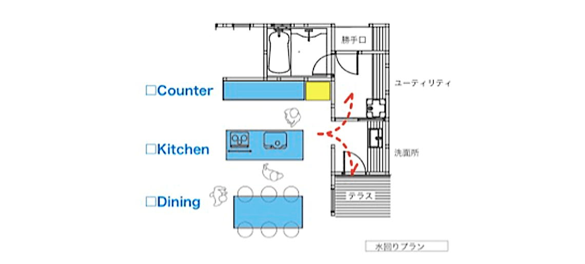 キッチンの配置 / 自分の流れをつかんで間取りで考えるキッチン