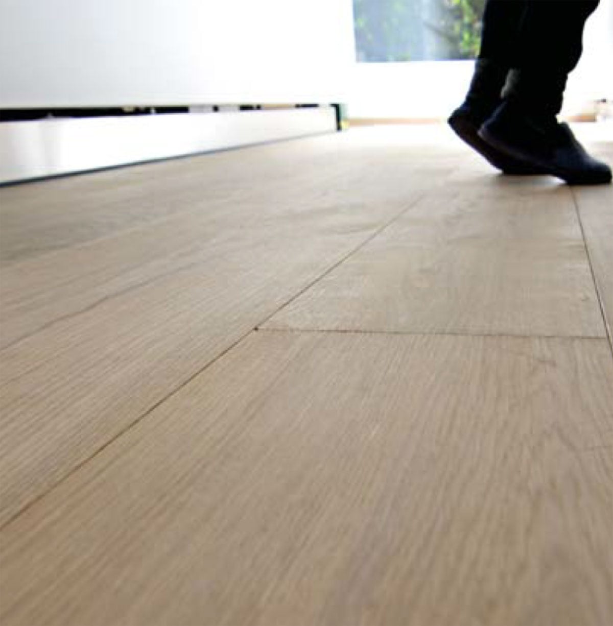 特に繊維方向(長手方向)はほかの2方向と比較すると変化量が極めて小さくなります。そのため、無垢フローリングは、繊維方向である縦方向にはほとんど変化しませんが、季節変動に合わせて横方向には大きく伸び縮みします。(夏には隙間が埋まり、冬には隙間が大きくあく。)特に床暖房を行う場合は伸び縮みがさらに激しくなるため、幅広タイプの無垢フローリングは床暖房では使用できない場合がほとんどです。