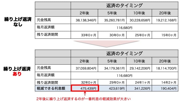 2つのタイプで利息軽減額にどれほど差が出るのか