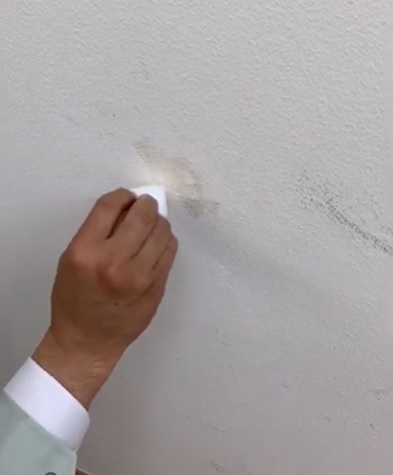 消しゴムやメラミンスポンジで全ての汚れが落ちなかったり、メラミンスポンジで削れ過ぎた場合には、あらかじめ作っておいたしっくいを塗ります。