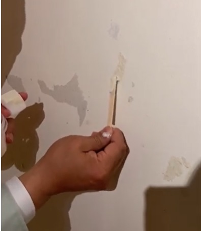 テープを貼って、それを剥がした時に、一緒にしっくいが剥がれてしまった場合など、しっくいの剥がれがひどい場合の補修を説明します。