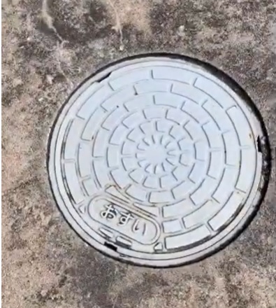 このフタはほかにもありますが、どれも見つけやすくなっています。これらが下水管につながっています。