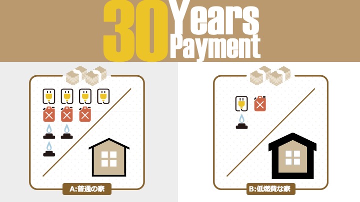 つまり、「低燃費な家(高性能住宅)」は、初期費用こそかかるかもしれませんが、約30年で建てる際にかかったコストを回収できるのです。