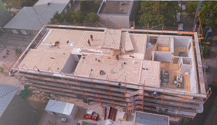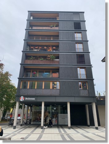 環境配慮型の木造建築が多いドイツでも、これは珍しいと話題になっている建物があります。それが2021年夏に完成した「ブッキンガーストラーゼ52」という名称の建物。フライブルク市の社会福祉住宅地区、ワインガルテンに建っています。