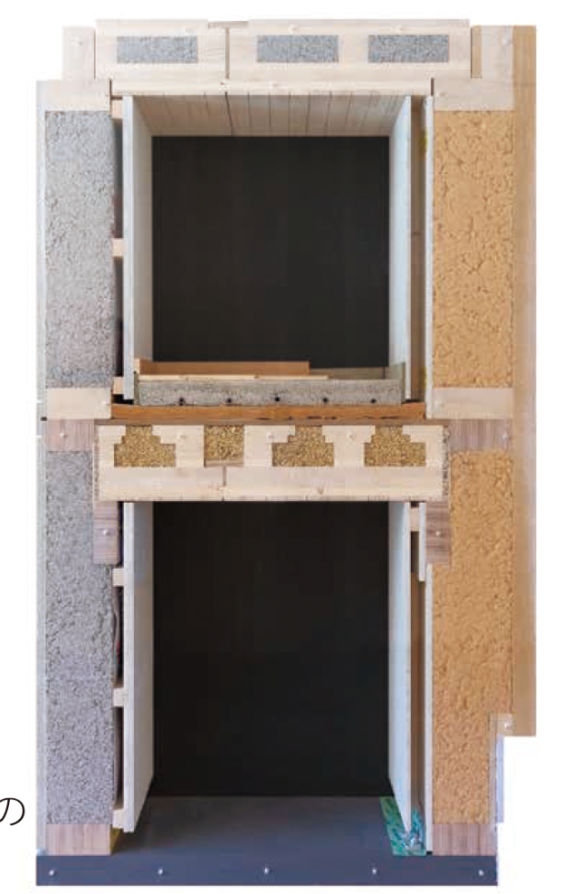 実のところ、外壁パネルの充填断熱には、当初、フライブルク市・グーテックス社の木質繊維断熱材を充填するつもりでしたが、防火耐火規定により政府から許可が下りず、ロックウールを使用せざるを得なかったのだそうです。