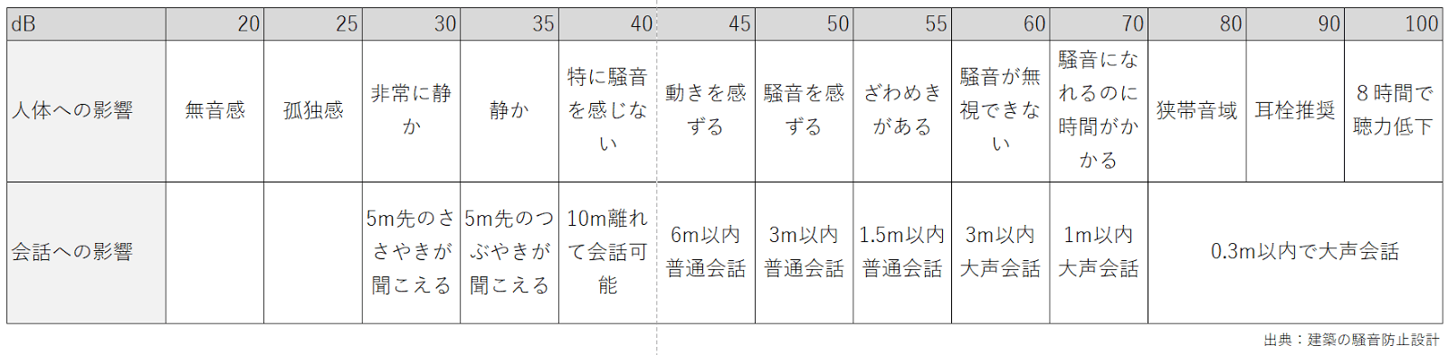 ただし、実際には音の感じ方には個人差があるため、上記はあくまでも目安に過ぎず、実際の周辺環境や人間関係などの諸事情等を含めて考える必要があります。