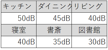 また、住宅内で不快に感じる音の大きさというのは、場所によって大きく異なります。(生活するにあたって自ら発生させる音の大きさが異なるため)