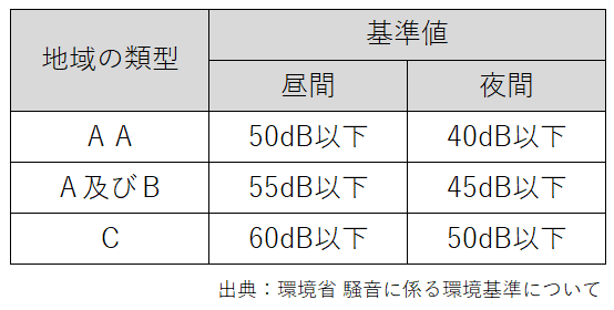 環境省では、最低限度の騒音に係る環境基準というものが以下の通りに定められています。なお、ウェルネストホームでは、環境基準値は最低限度を規制しているものであり、良質な住環境のためには、余裕をもって下回る必要があると考えております。