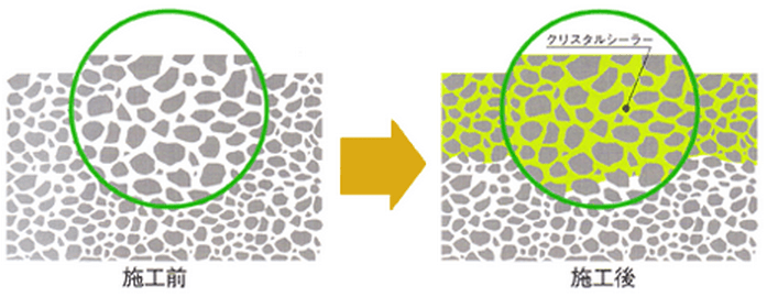 コンクリートのアルカリ成分は、空気中の炭酸ガス等の作用により絶えず浸食されています。侵食を防ぐためには、「浸透性無機質反応型改良剤」というコンクリート専用の特殊コーティング剤で形成された改質層を形成するという対策が有効です。 この方法により、中性化現象の要因である水、炭酸ガス、酸化性ガス等の進入を防ぐことができ、基礎の劣化を長期的に抑制することが可能となるのです。 内部の水分も漏れにくくなるため、打設後の数年における水和反応を向上させる効果も期待できるという嬉しいおまけ付きです。