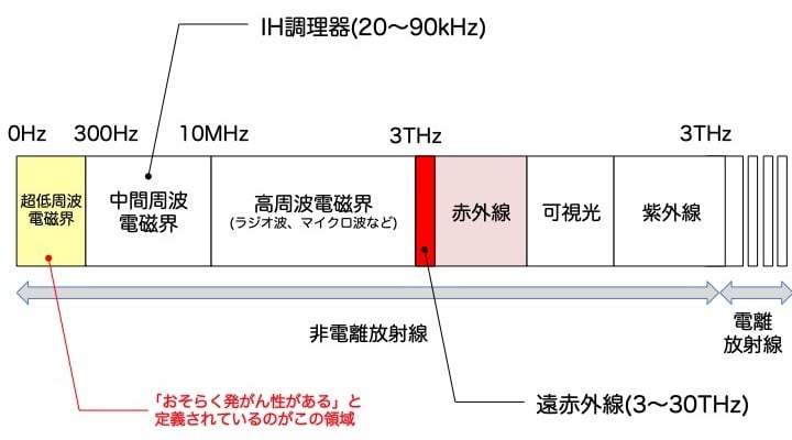 - WHOの下部組織であるIARC(国際がん研究機関)においては、極低周波(1〜100kHz)の電磁波を「グループ2B:発がん性があるかもしれない」に分類している