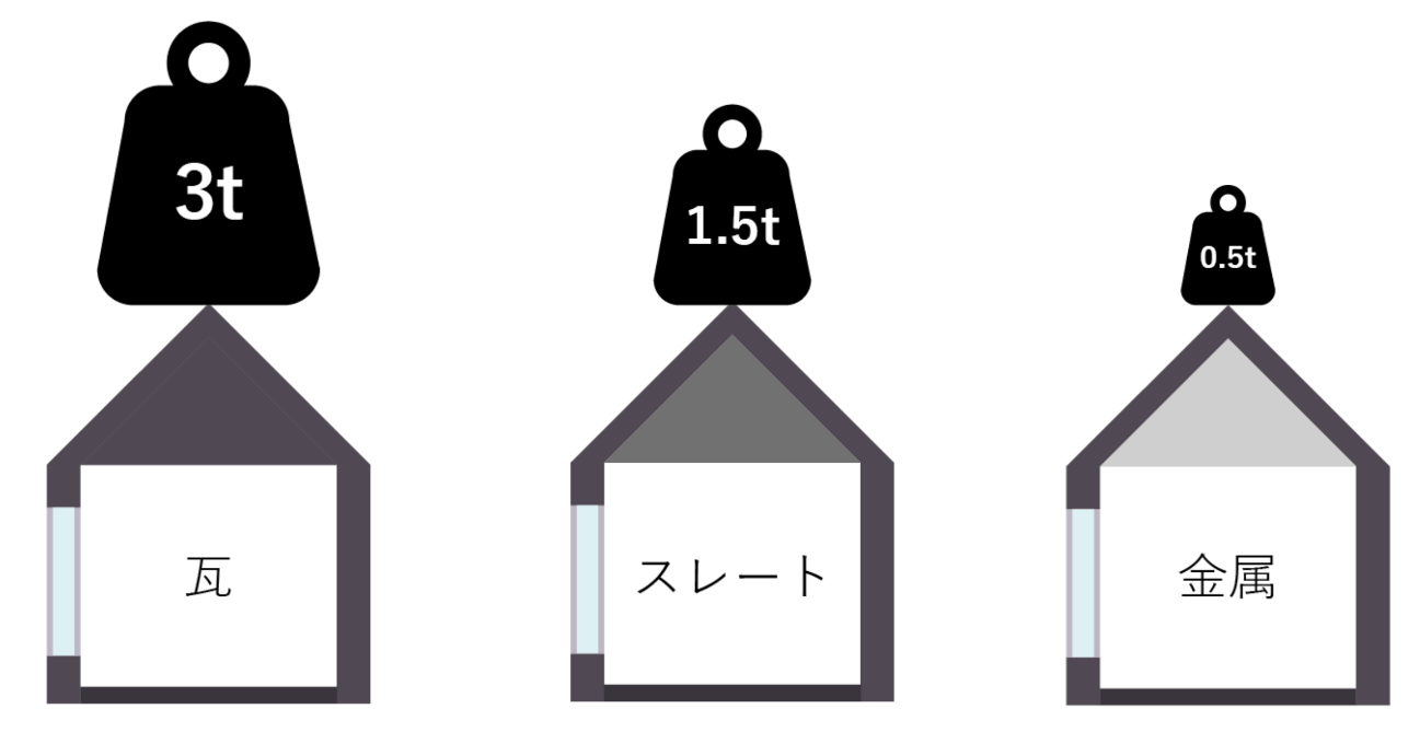 人間でも頭が重いとフラフラしやすいように、屋根の重さによって必要となる耐力壁の量が大きく変わります。屋根が軽いほうが必要壁量が少なくて済み、耐震性が良いということになります。