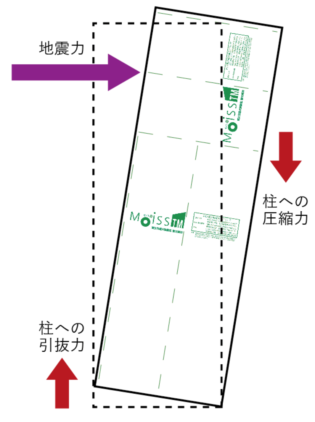 震度7クラスの大地震では、しばしば土台から柱が引き抜かれて倒壊した事例が多数確認されます。これは、横揺れが生じた時に生じる「圧縮力」と「引抜力」が関係します。