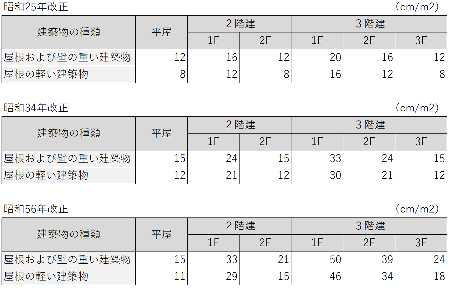1981年(昭和56年) | 宮城県沖地震を踏まえて法改正(新耐震基準)、基準壁量が増加される。 |