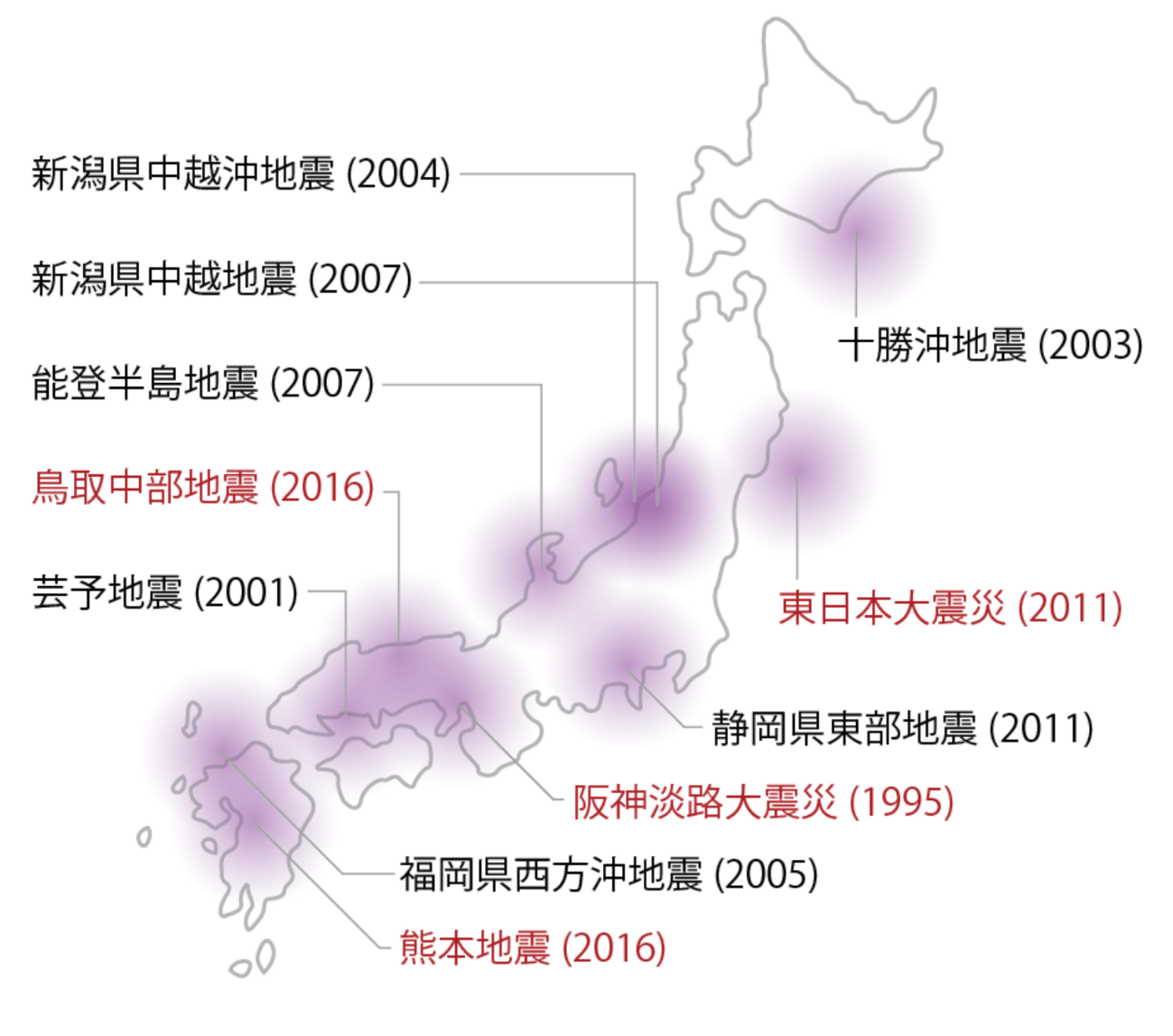2016年4月 | 熊本地震 | 7.3 | 7 | 30,957 | 8,257 |