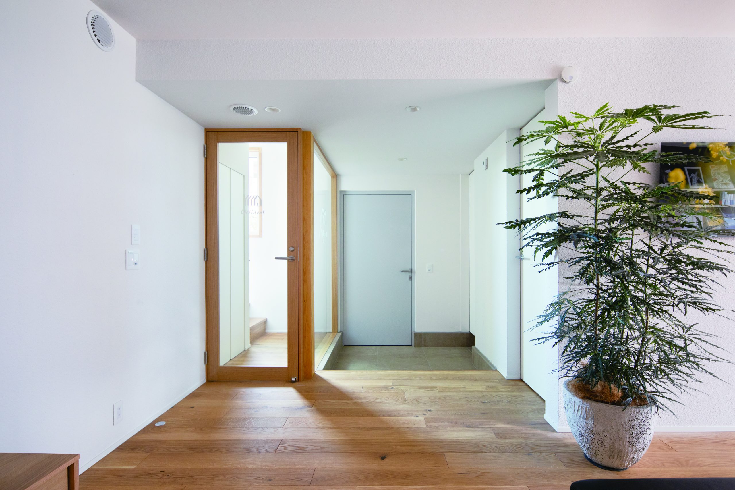 ちなみに、この玄関ドアも分厚くなっていて、熱伝導率は、0.7W/㎡Kです。気密性と断熱性に優れたとんでもない玄関ドアですね。また、室内からは簡単に玄関ドアを開けられますが、外からは鍵を持っている人でないと開くことができません。非常に防犯性の高い玄関ドアになっています。
