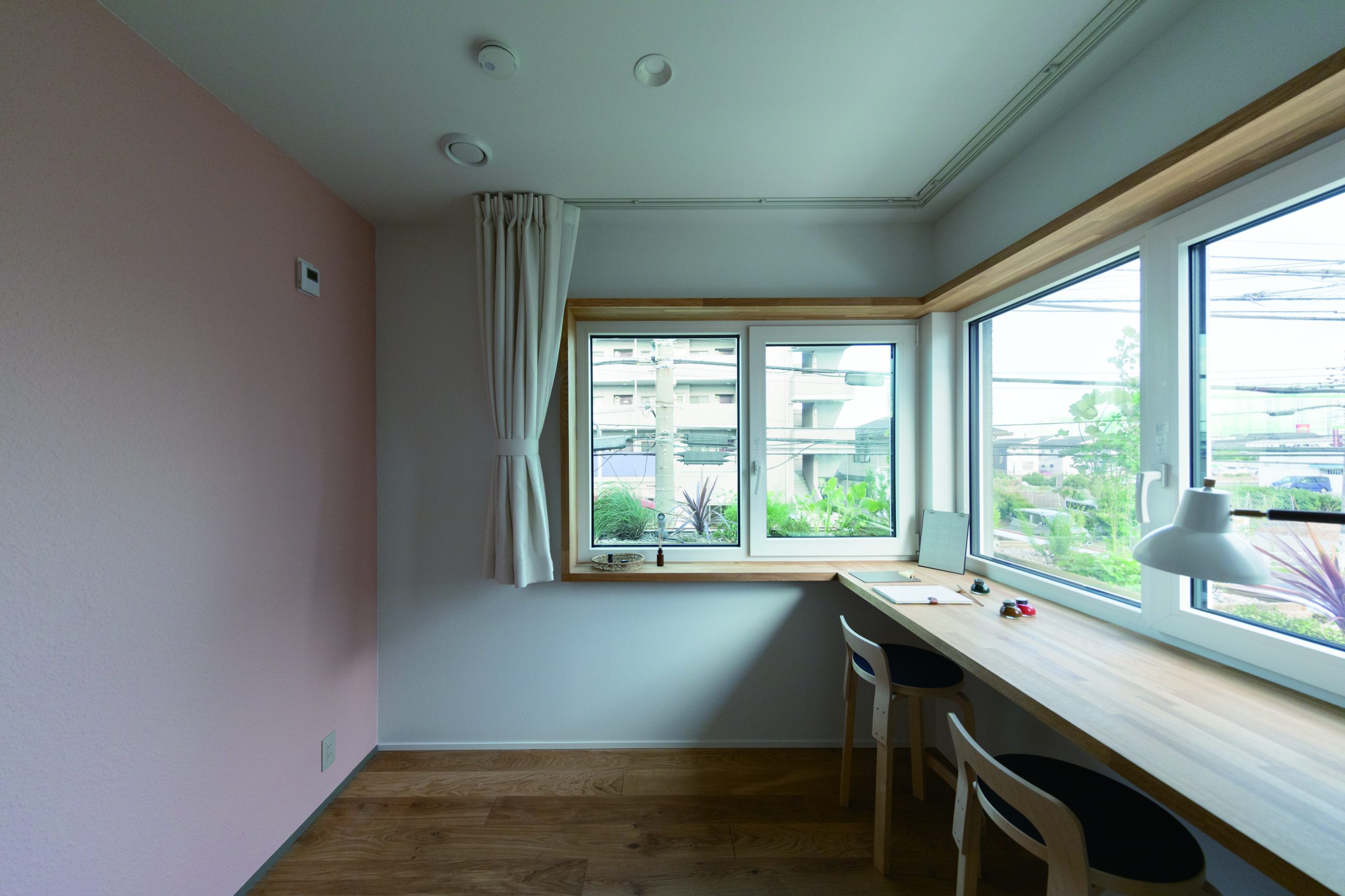 もう一つの子供部屋も同じく、窓と一体感のある机があります。こちらも十分な広さがあります。