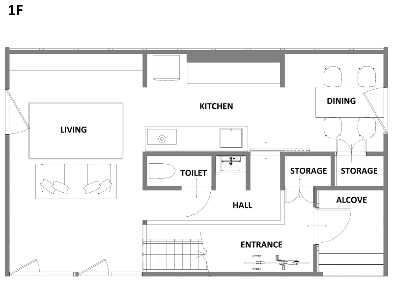 ウェルネストホームのモデルハウス第1号である、高松の伏石モデルの1階と2階を逆にした間取りになっています。ウェルネストホームにとっては原点回帰ともいえる間取りなのです。
