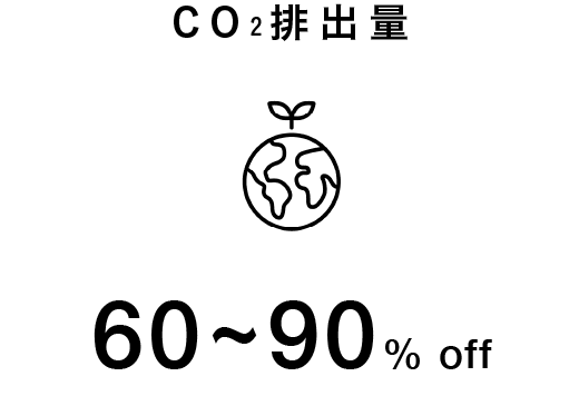 ウェルネストホームで1年間に排出するCO₂の量は、一般的な住宅と比較し、60〜90%削減しています。(2013年基準)