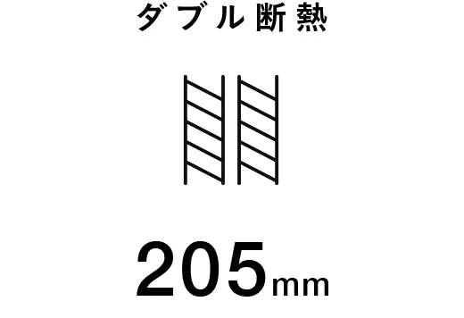 ウェルネストホームの壁はダブル断熱(充填断熱+外張り断熱)を採用し、断熱材だけで合計205㎜の厚み(一般的な住宅の2倍以上)です。