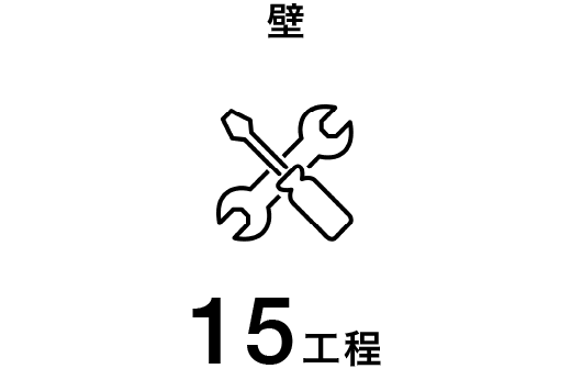 緑の柱、充填断熱、外張り断熱、耐力面材、気密シートなど、しっかりと気密を取りながら、15もの工程を経て、ウェルネストホームの壁はできています。