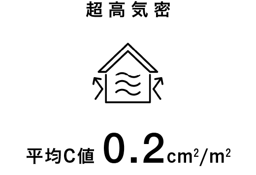 家の隙間面積を示すC値は気密性能の基準です。ウェルネストホームのC値0.2㎠/㎡は、日本のハウスメーカーでトップクラスの数値※1です。