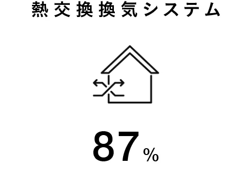 空調した室内の空気を換気で捨て過ぎずに室温を一定に保つ、熱交換型の換気システムを採用。捨てる空気から最大87%もの熱を回収しています。※7