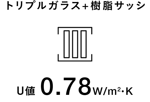 ウェルネストホームの窓は世界トップクラスの断熱性能を誇り、そのU値は0.78W/㎡・Kと、国内で最も普及している窓の平均U値4.65W/㎡・Kの約6倍の性能です。