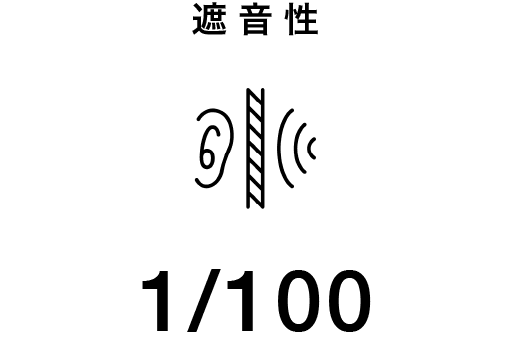 窓と壁は外からの500Hz以上の音域の音を40dB以上削減することができます。マイナス40dBは、屋外の騒音を100分の1以下まで減少させる遮音性能です。
