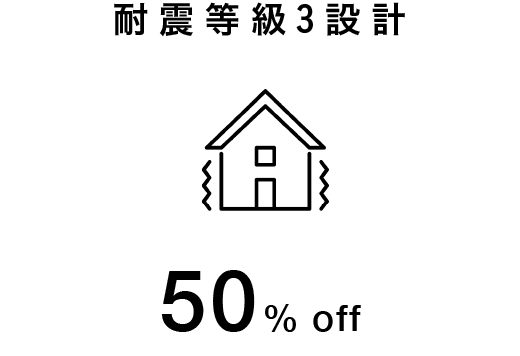 耐震等級3設計が標準仕様です。等級3は、等級1の1.5倍の地震に耐えられるだけの性能・耐震強度水準です。地震保険の保険料が50%割引になるのも利点です。※4