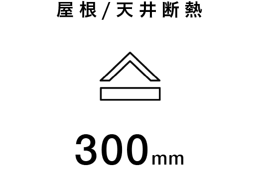 屋根/天井の断熱材※2には、断熱、調湿、防音に非常に優れたセルロースファイバーを300mm以上(一般的な住宅の2倍以上)使用しています。